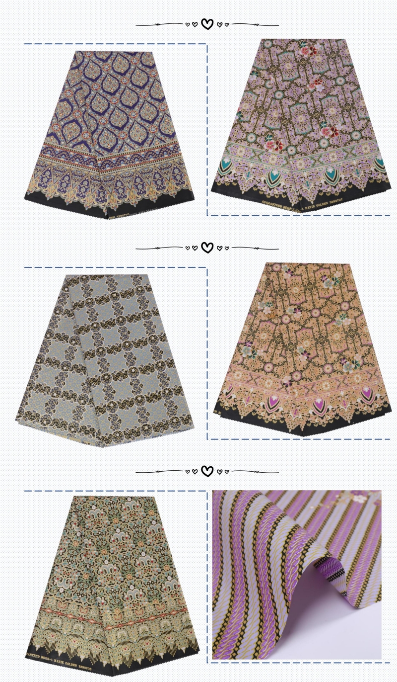 This fabric combines the print with the gold powder process to make your outfit look great in the crowd.